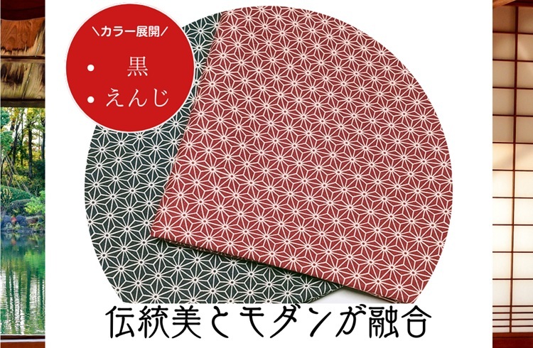 <価格> 4,250円 (税込) <サイズ> 銘仙判 : 55×59㎝ <商品紹介> 安心の日本製 古くから装飾模様として使われてきた「麻の葉」模様子供の健やかな成長の願いや、魔除けとして使われてきました。 法事・法要などお使いの座布団に被せるだけで、サッと...