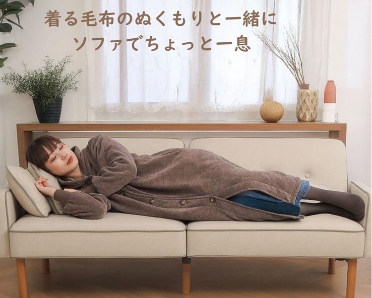 着る毛布 ルームウェア ベージュ Mサイズ レディース フランネル 柔らかい 温か 肌触り最高 袖口リブ 丈 110cm ポケット付 襟付 裏地あったか 寝具屋