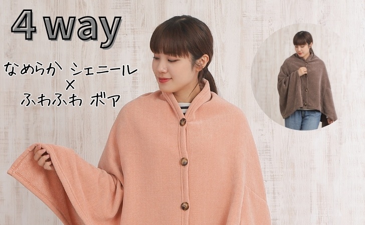 マルチブランケット 柔らか あったか シェニール クッション 腰巻 ひざ掛け 便利 4Way 肌触り最高 裏地あったか 洗える 節電 2色 80×145cm