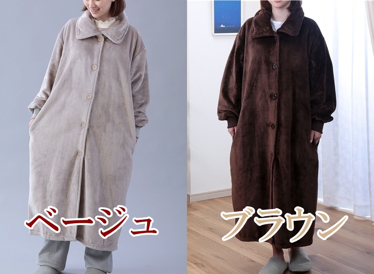<サイズ> 約 丈 110×身幅 60×袖丈 60 cm <カラー> ピンク / ブラウン <価格> 6,820円 (税込) <商品紹介> 触り心地抜群あたたかさ抜群 軽くて暖かいシェニールルームウェアゆったり目のサイズですので、お洋服を着ていても楽に羽織れます。 袖口も...
